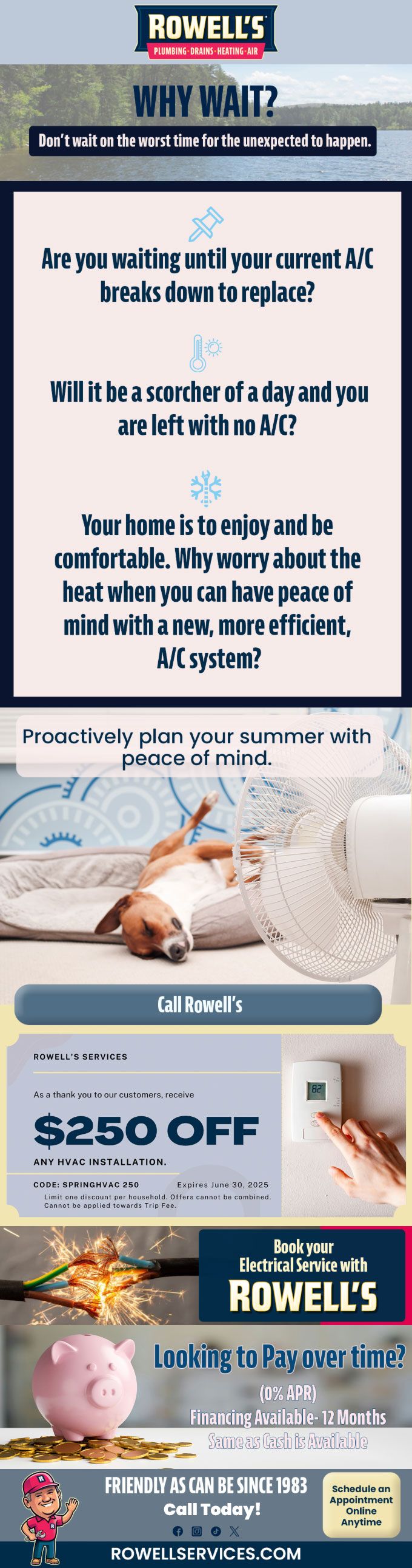 "Friendly As Can Be Since 1983!" When you need help with your plumbing, drains, heating, cooling or electrical in Belmont, you can always rely on Rowell's Services! Call us now or book online!
